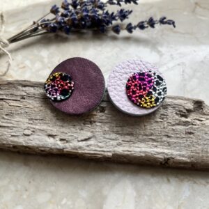 zł109.00Kolczyki koła, asymetryczne w kolorach, róż i fiolet