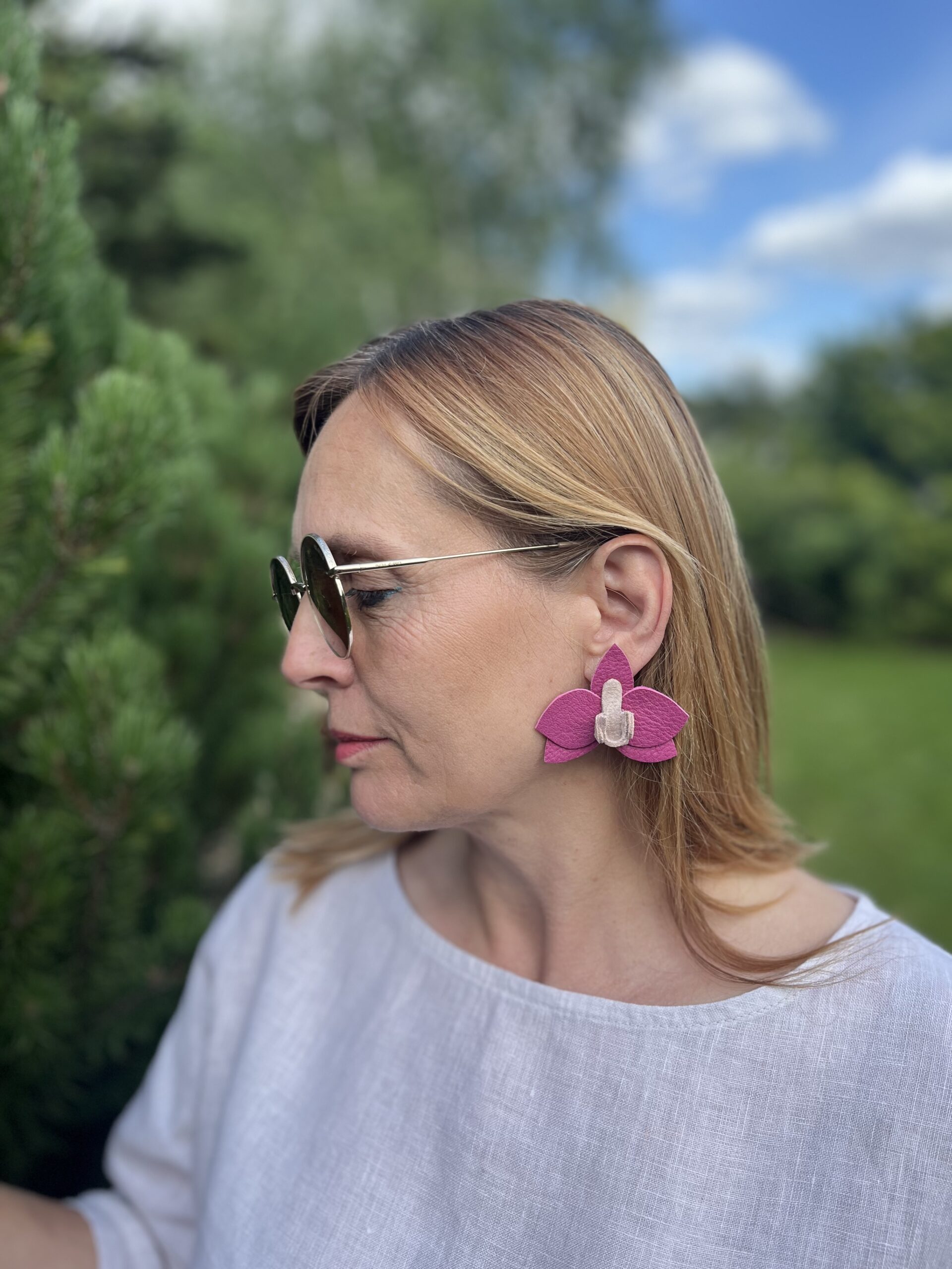 Poznaj niepowtarzalne kolczyki „Orchidee” — harmonijne połączenie naturalnej elegancji i świadomego luksusu. Każda para powstaje ręcznie, z najwyższą starannością, z ekologicznie pozyskanej skóry, dając drugie życie materiałom, które często są niedoceniane.
