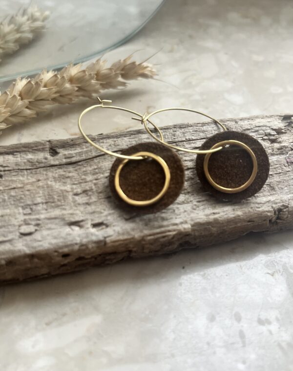 z zawieszką z odzyskanej zamszowej skóry oraz subtelnym kółeczkiem ze stali chirurgicznej.
