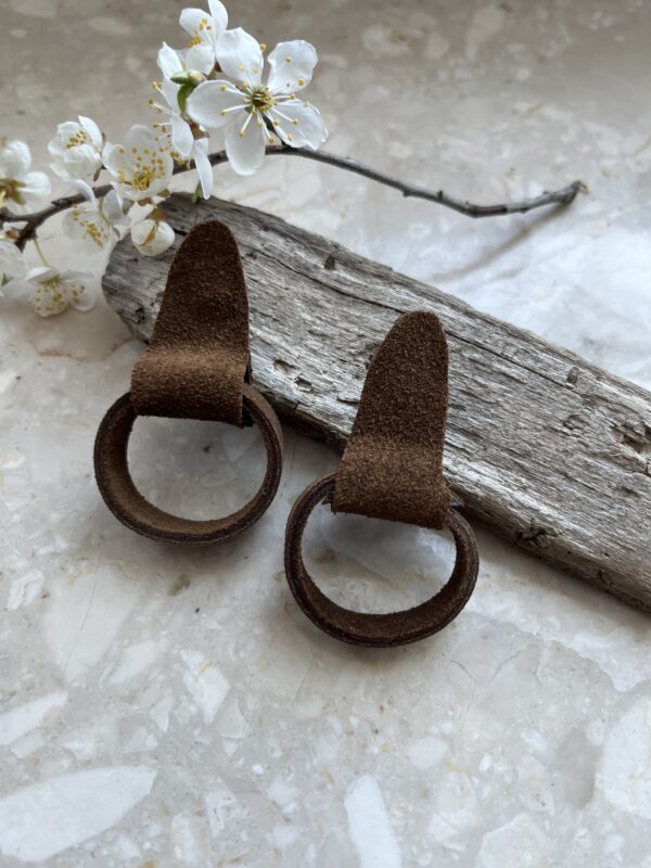 Wykonany z włoskiej skóry welurowej, w duchu zero waste (z resztek skórzanych).