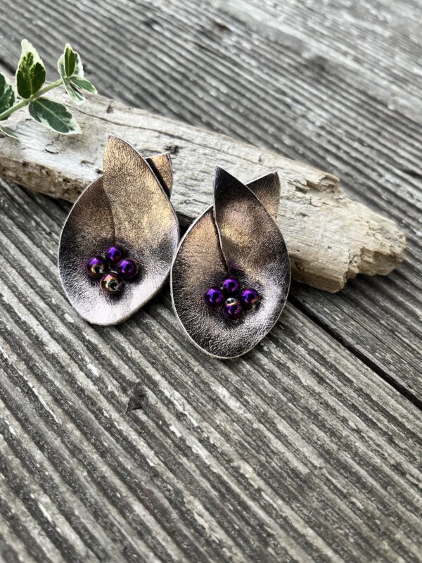 Kolczyki handmade ze skóry naturalnej i Hematytu.
