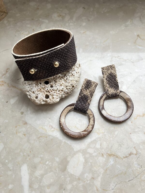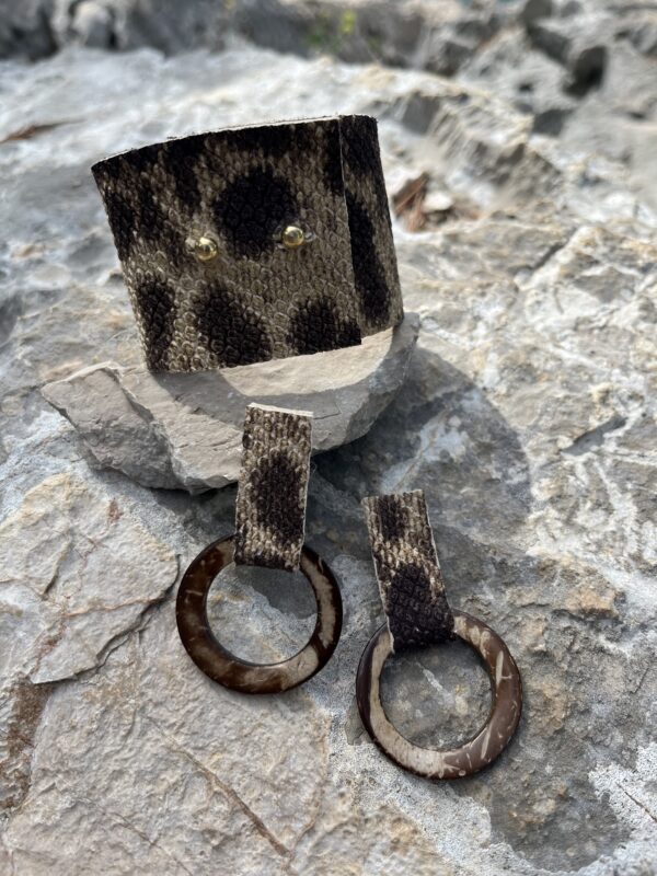 Krążek kokosowy, skóra naturalna o zwierzęcym princie.