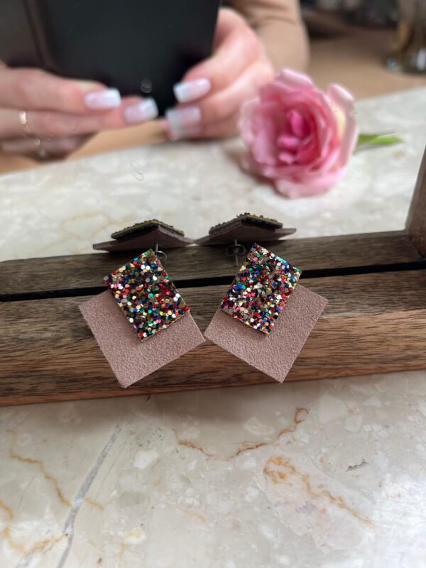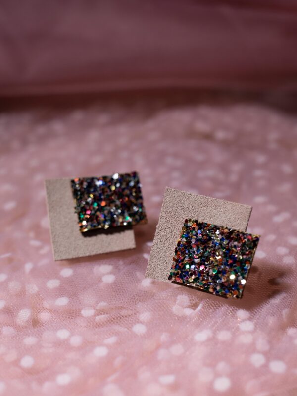 10. Kwadraty z brokatem Geometryczna forma, delikatny odcień pudrowego koloru skóry naturalnej i błysku brokatu. Niepozorne a robiące efekt „WOW”.
