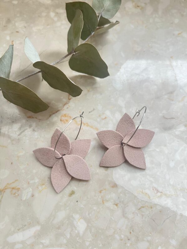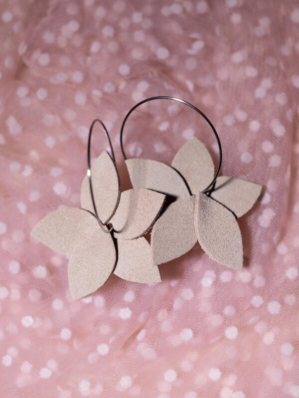 4. Kwiaty na kołach (pudrowy róż) Skórzane kwiaty na kołach. Wykonane ręcznie, ze staranną precyzją. Doceń fakturę i kolor skóry.