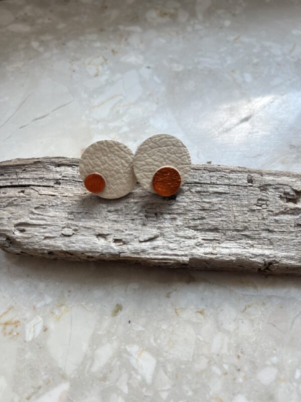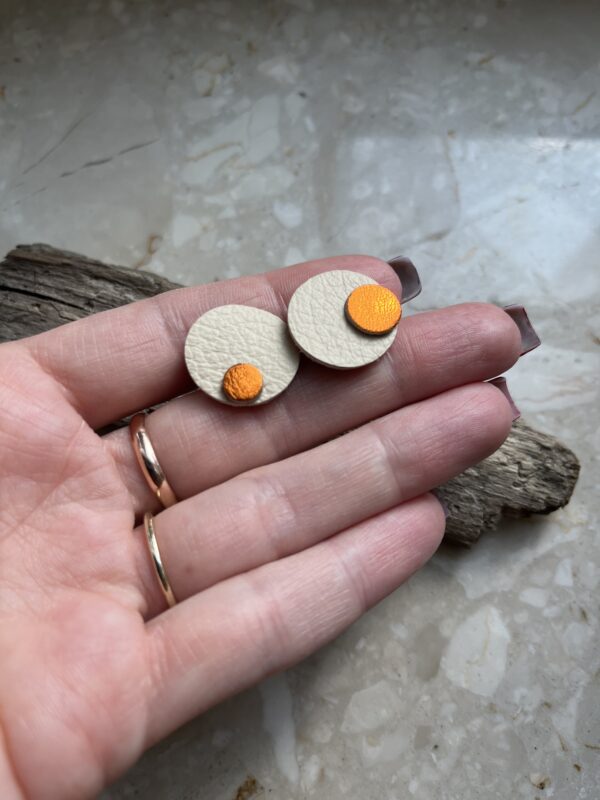 Kolczyki wykonane są ze skóry naturalnej w duchu zero waste, z resztek skórzanych, na sztyftach ze stali chirurgicznej.