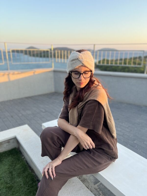Opaska jest dziergana podwójnie na drutach metodą na około, dzięki czemu zapewni komfort użytkowania.