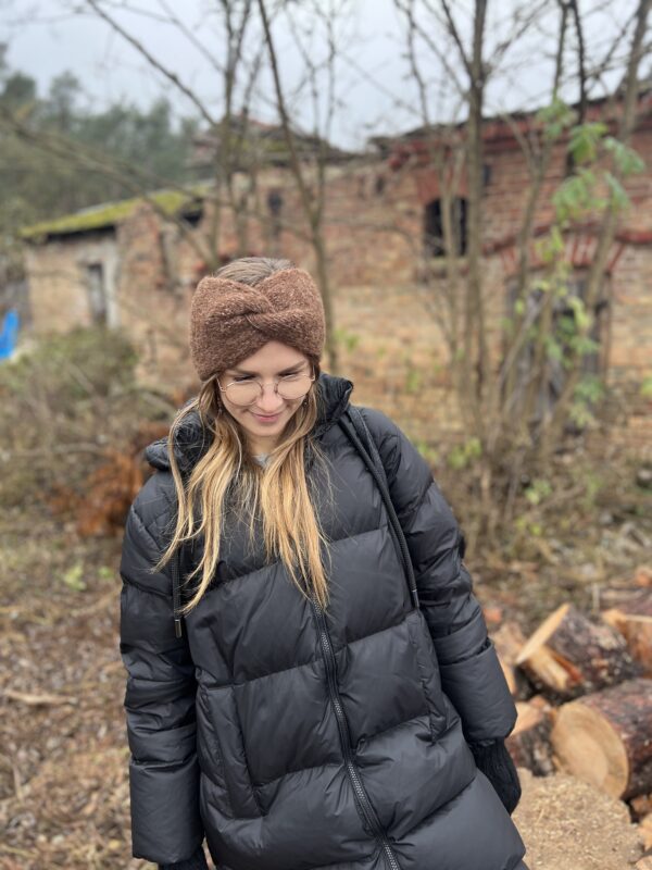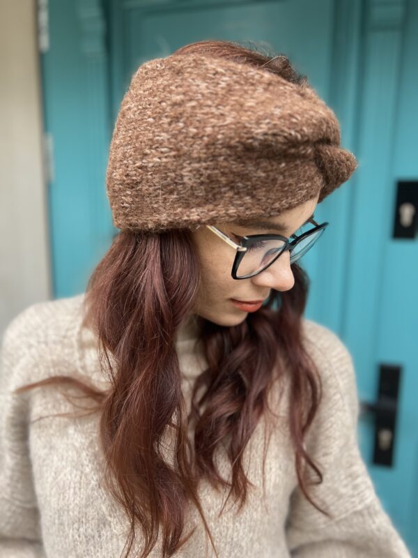 Opaska jest dziergana podwójnie na drutach metodą na około, dzięki czemu zapewni komfort użytkowania.