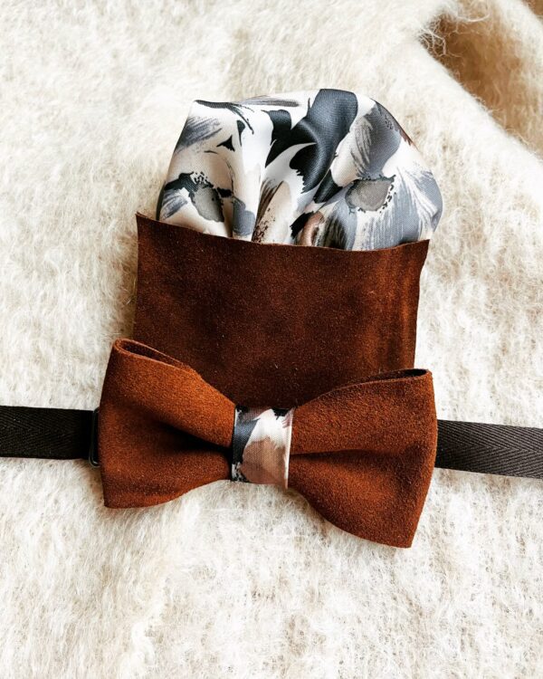 Skórzana mucha i poszetka z jedwabiem